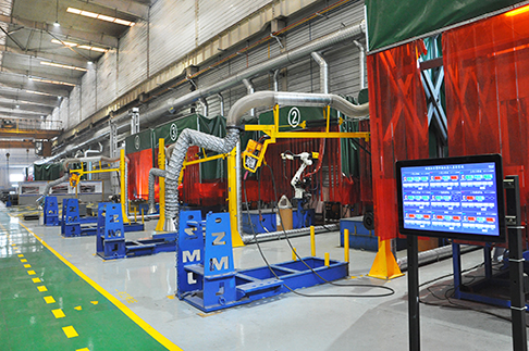 中部槽智能焊接機群,可實現機器人與溫控系統聯動,確保預熱溫度滿足要求,保證焊接質量