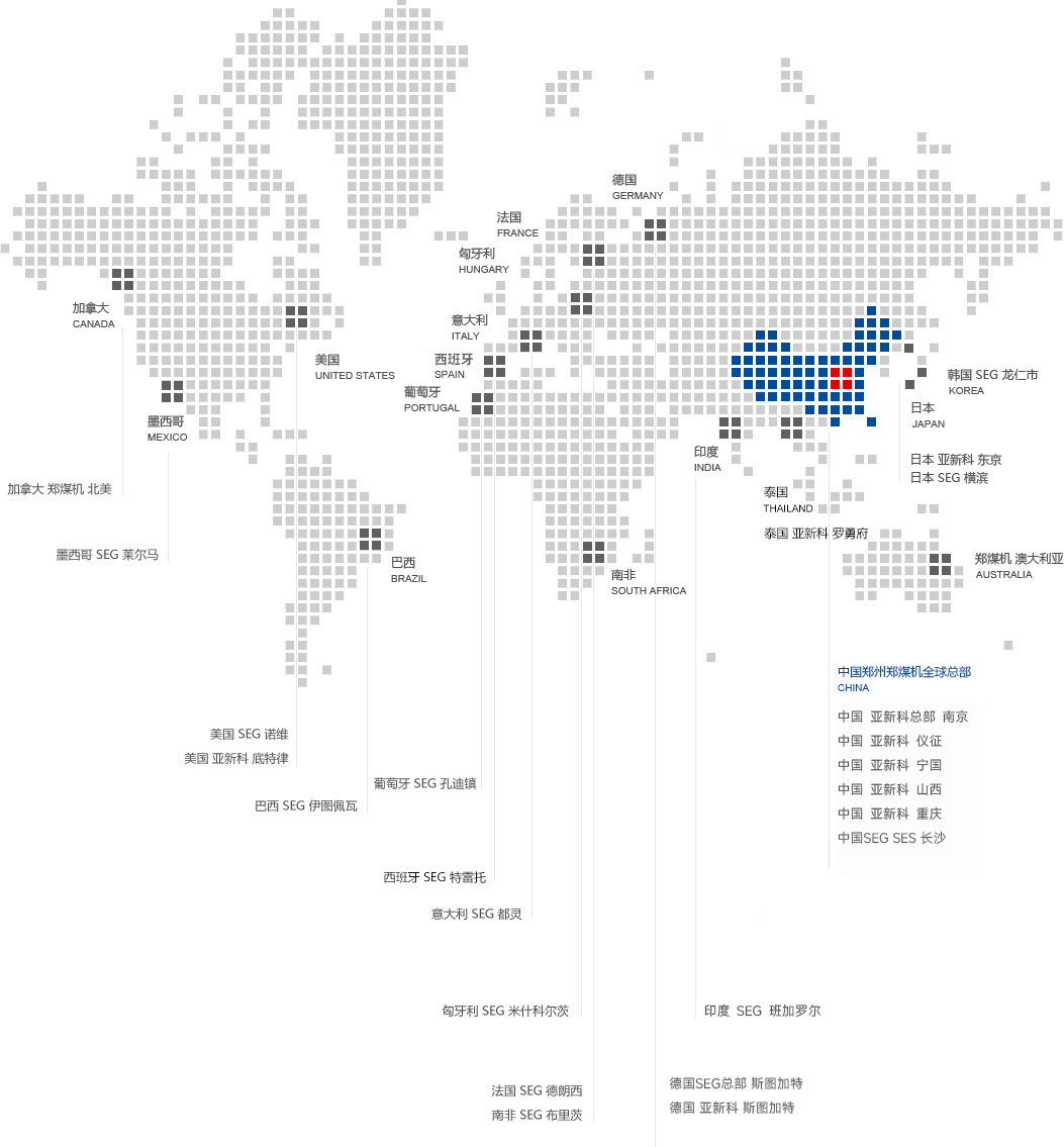 鄭煤機分布在全球十七個國家二十八個基地